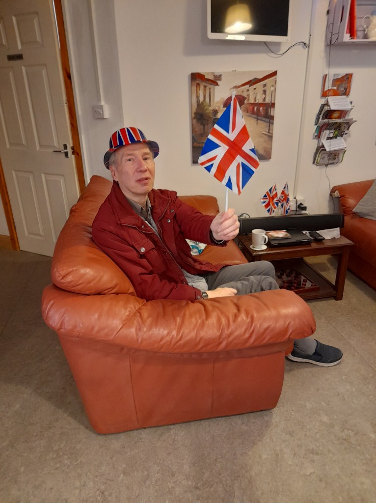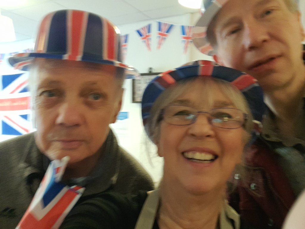 Here’s Tony, Danny and Janice enjoying the start of the Jubilee week. It was Cyril, Graham, Leslie and Bev who entertained everyone with music each afternoon.
