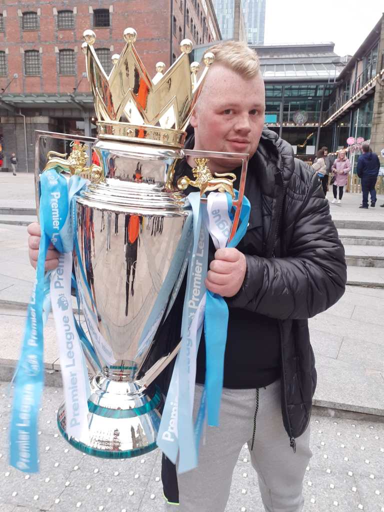 Lee after answering 5 questions successfully was offered the opportunity to go to Manchester to have his photograph taken with the previous years cup. Which is a long held dream of Lee’s, who is an avid city fan.