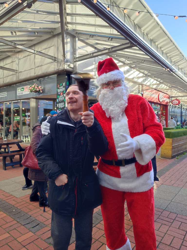 Alex enjoying his winnings after coming out top in the cafes quiz night…